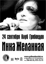 September 24th. New show in Griboedov Club. As always Inna Zhelanaya
