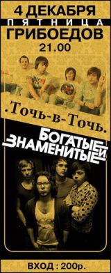 Новости / 21.00 концерт групп БОГАТЫЕ И ЗНАМЕНИТЫЕ (dance rock) и ТОЧЬ В ТОЧЬ (pop rock)