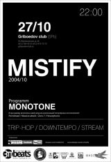 Группа основана в 2004 году в Санкт-Петербурге. «MiSTiFY» двигались в направление музыкальных экспериментов в рамках стиля Trip-Hop. В течение времени состав команды изменяется, обновляется и музыка меняет свою стилистику, но концепция Trip остается незыблемой. Композиции содержат «классические» приемы trip-hop, блюзовые настроения, элементы dub и downtempo. Идеологией проекта является cоздание новых ощущений подсознания, способом удивительно красивого музыкального языка «Trip-hop». Название «MiSTiFY» сформировалось в достаточно большой промежуток времени, на наш взгляд наиболее органично передает настроение и мистическую особенность нашей музыкальной деятельности. Репертуар состоит из композиций «MISTIFY» и популярных композиций представителей trip-hop направления. Состав группы: Yuki — вокал, Staicy — вокал, ритмбокс, дабл-трэк; computer, Antoniobono — вокал, V.Zolotseva — фортепиано; keyboard, V.Zolotsev — гитара, Dashachello — виолончель. http://zvsoundesign.narod.ru/mistify