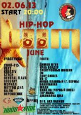 BooM & МОДНЫЙ КЛУБ ГРИБОЕДОВ представляют серию HIP-HOP тусовок “BooM”. Вас ожидает приятная атмосфера, только качественная музыка, конкурсная программа молодых команд и МС, определение одного лучшего каждый месяц, плюс выступление динозавров отечественной RAP музыки.