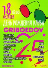 18 октября 18:00 МОДНОМУ КЛУБУ ГРИБОЕДОВ исполнится 25 лет