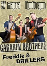 Как и во всем мире, так и в России рок-культура отсчитывает свое начало с полета в космос ракеты Ю.А.Гагарина. Первое путешествие человека в космос произвело колоссальное впечатление на молодых людей всего мира, ведь на их глазах рождалась новая эпоха. Разумеется, новое время требовало новых песен, новой музыки и новых ритмов. «Поехали!» — сказал Гагарин, и тысячи музыкантов сочли эту фразу за взмах дирижерской палочки и разом ударили по струнам гитар! Именно этот фактор и определил название группы «Gagarin Brothers»! Музыканты Gagarin Brothers называют свой стиль «Новый Ретро Альянс» — танцевальная музыка времён первых полётов в космос — это аутентичный коктейль из музыкальных американских стилей того времени (latino, rockabilly, gypsy jazz , surf ,twist ), шлягеры бывших демократических республик, русско-советский городской фолклор, а так же собственные творения! В процессе формирования коллектива прошло немало «Артистов», пока не собрался постоянный состав профессиональных музыкантов, и не была выяснена схожесть музыкальных вкусов, целей и жизненных ориентиров: Павел «Пол» Стёпин — гитара, вокал (ex-Мистер Твистер, Smokin’ Boolldozers), Сергей «Джангл» Арнаутов — барабаны, Дмитрий «Джез» Ильин — контрабас (ex Awaqua, The Meantraitors, The Rattlesnakes), Кондрашов «Боба» Владимир — аккордеон. http://www.gagarinbrothers.ru