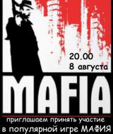 Дорогие Друзья!! Приглашаем принять участие в популярной игре МАФИЯ, которая состоится в воскресенье 8 августа в 20.00 в нашем клубе. За подробной информацией, а так же бронирование мест обращайтесь: +7 953 375 21 88 Данил